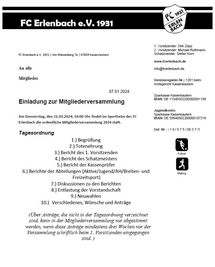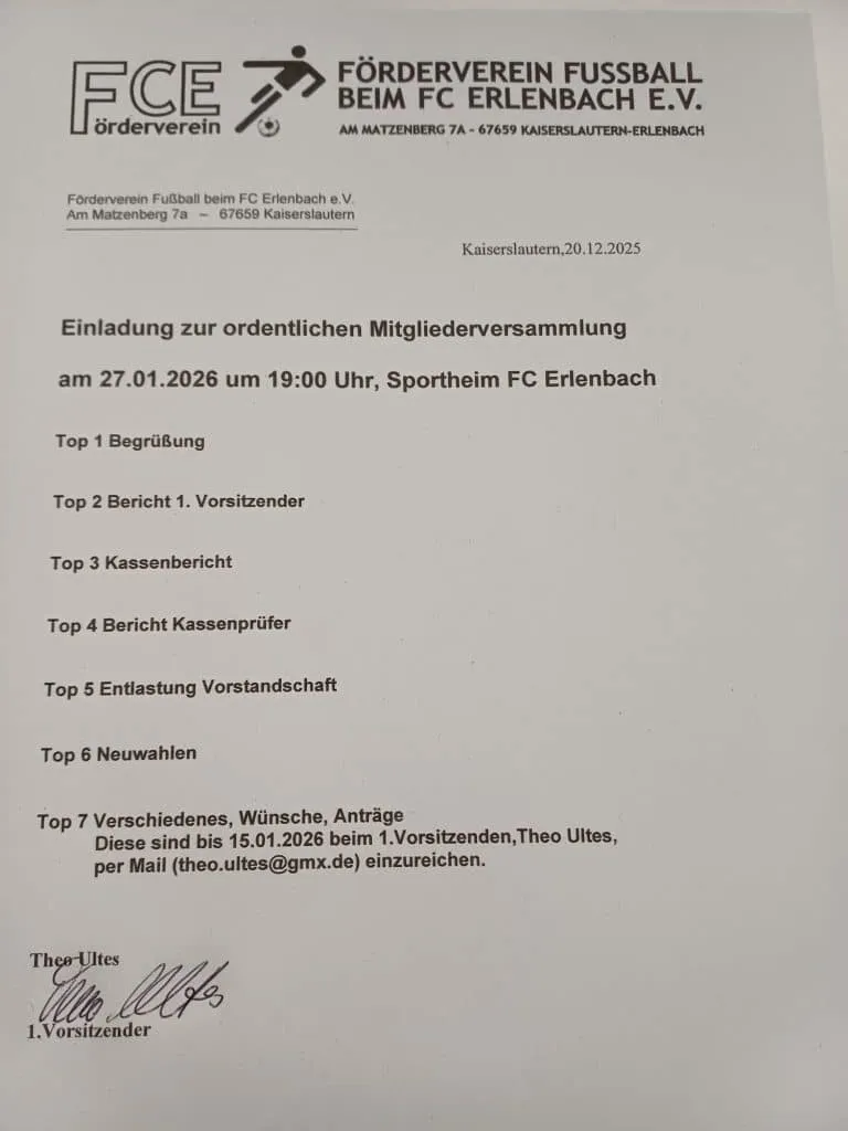 Aus organisatorischen Gründen wird die Mailadresse vorstand@fcerlenbach.de zum 30.06.2025 abgeschaltet.